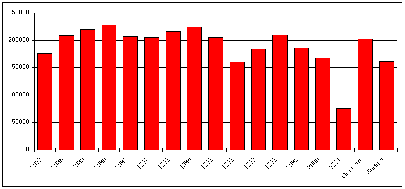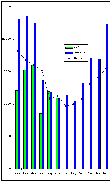 Måned 1987 1988 1989 1990 1991 1992 1993 1994 1995 1996 1997 1998 1999 2000 2001 Gennem. Budget